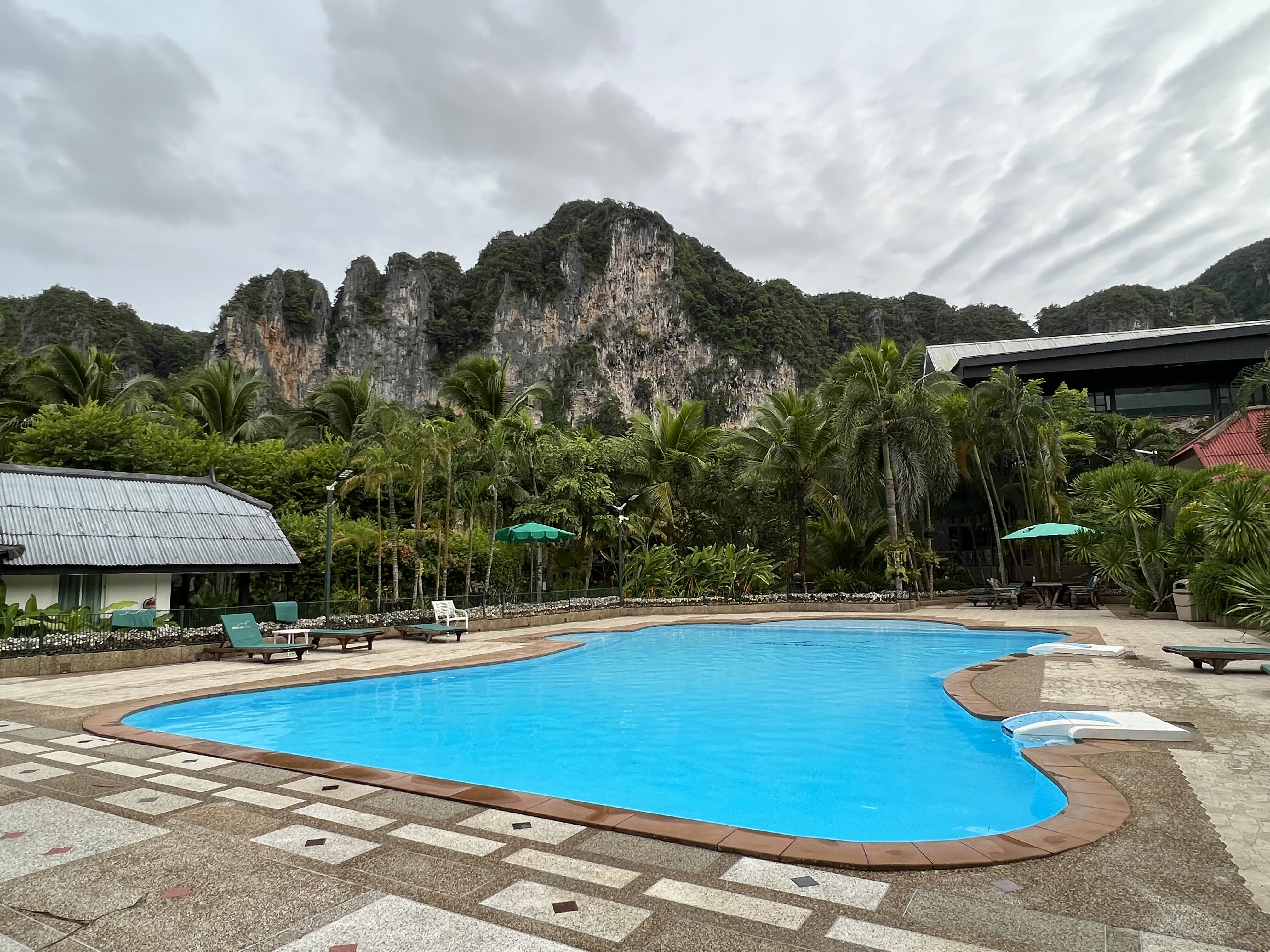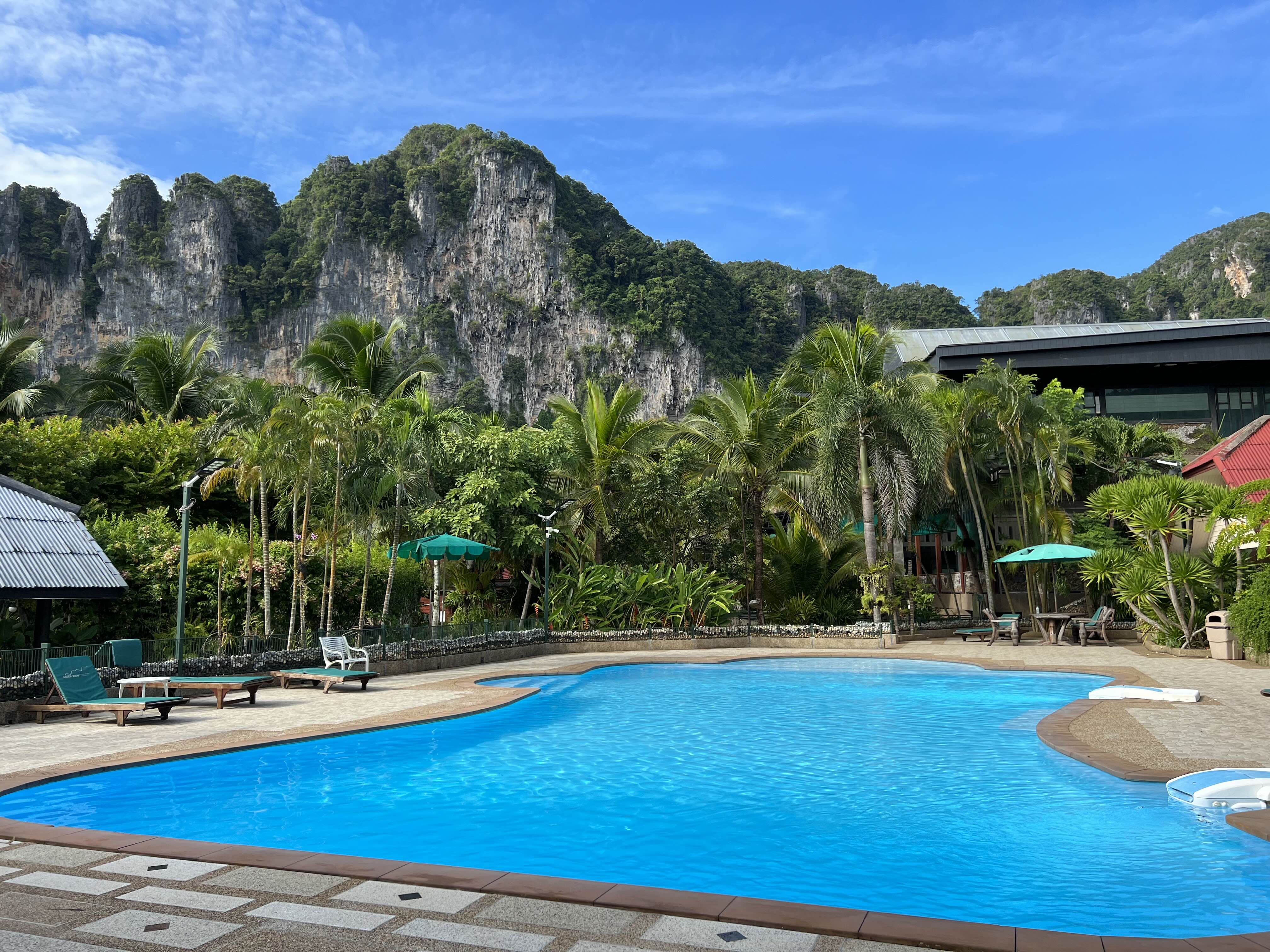 주변에 선베드 테이블도 있고 멋진 뷰를 자랑하는 수영장입니다. 휴양지에 온 느낌이 물씬납니다. 사실 아오낭 해변 가는 것보다 여기서 노는게 정말 재미났답니다.