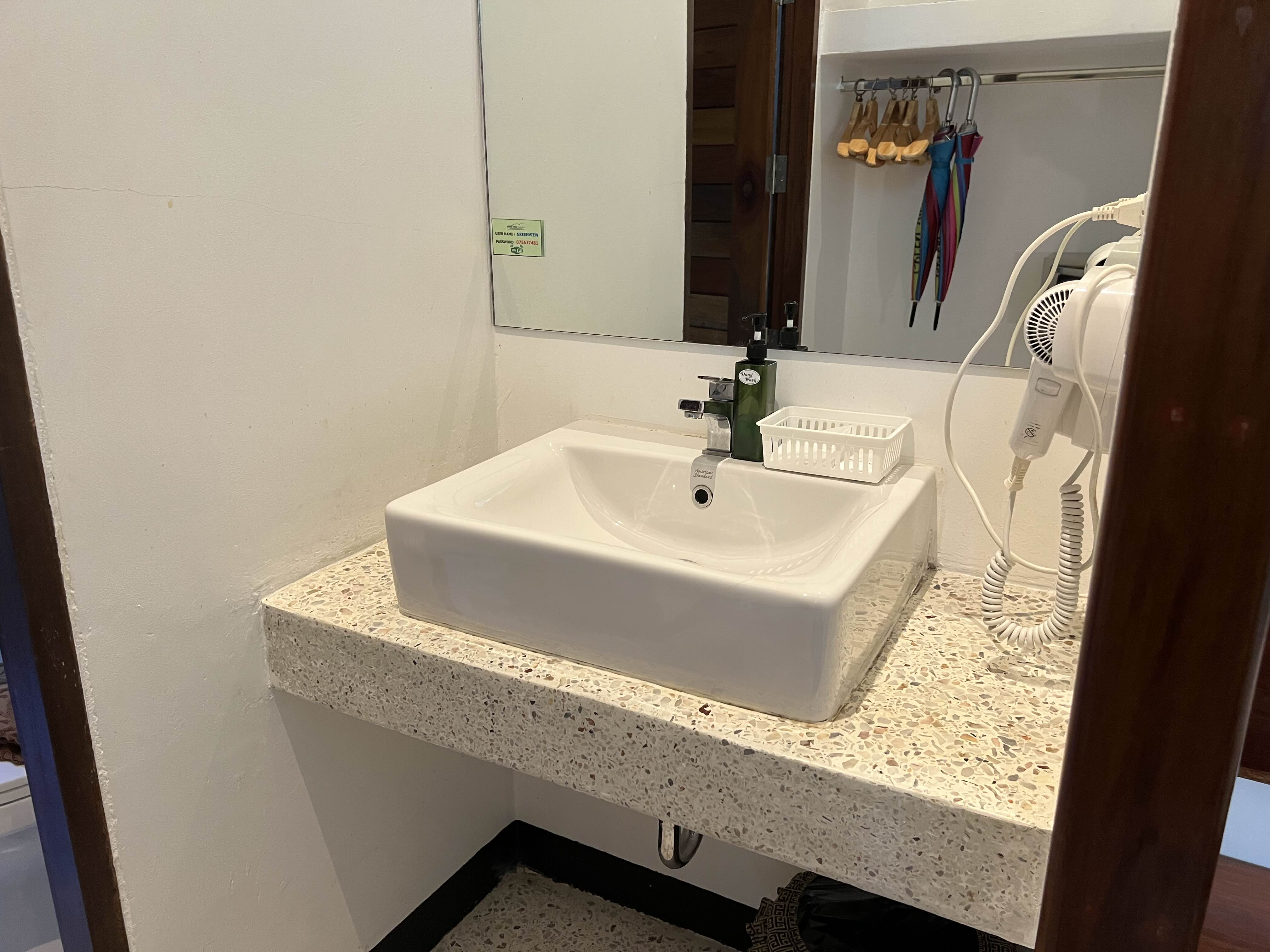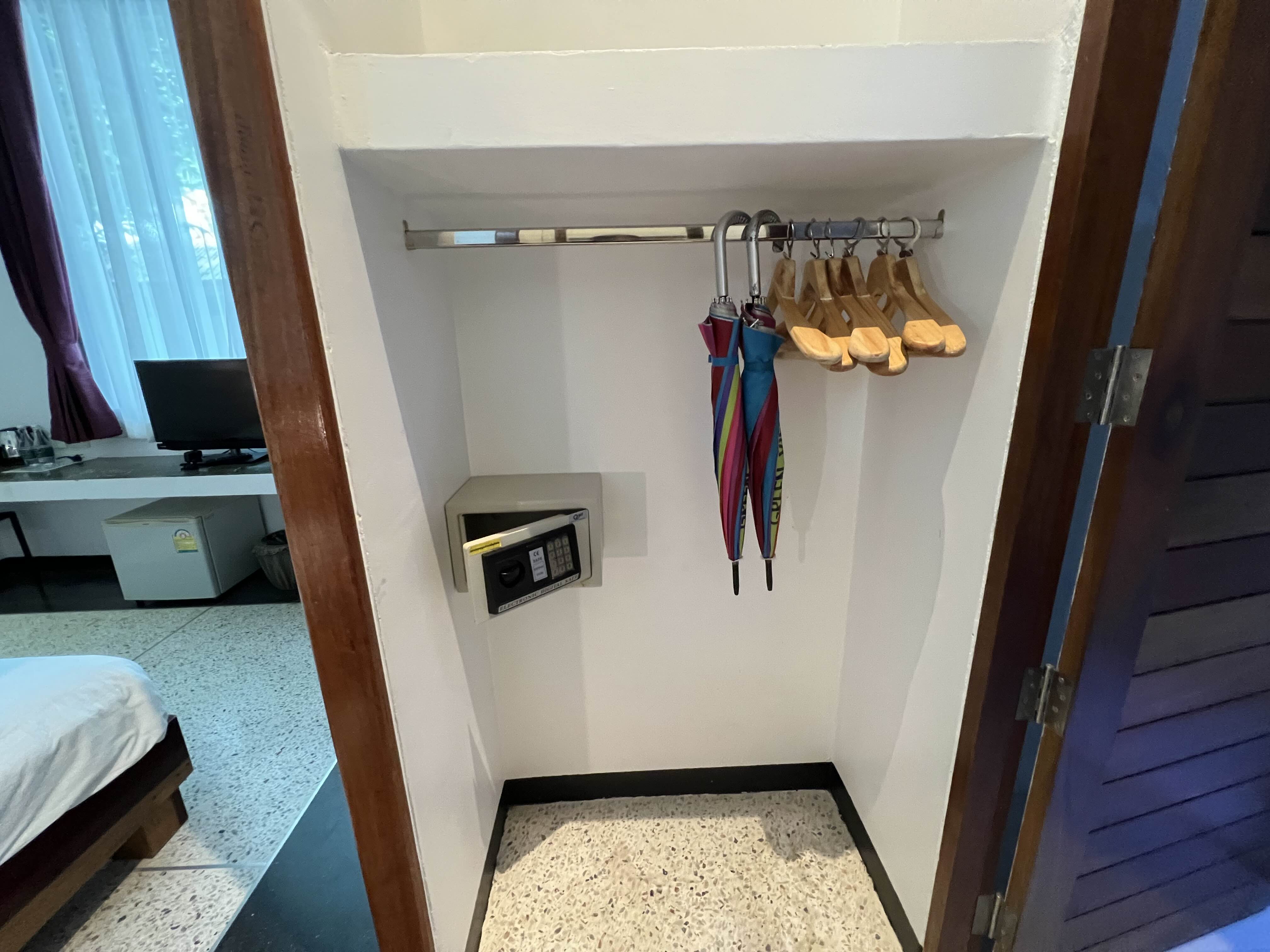 화장실은 침실 옆쪽에 위치해있습니다. 세면대 드라이기가 따로 있고 우산과 옷을 걸수있는 곳이있습니다. 그리고 그위에 금고가 있습니다. 화장실과 따로 분리된 공간이 있어서 좋더라고요.