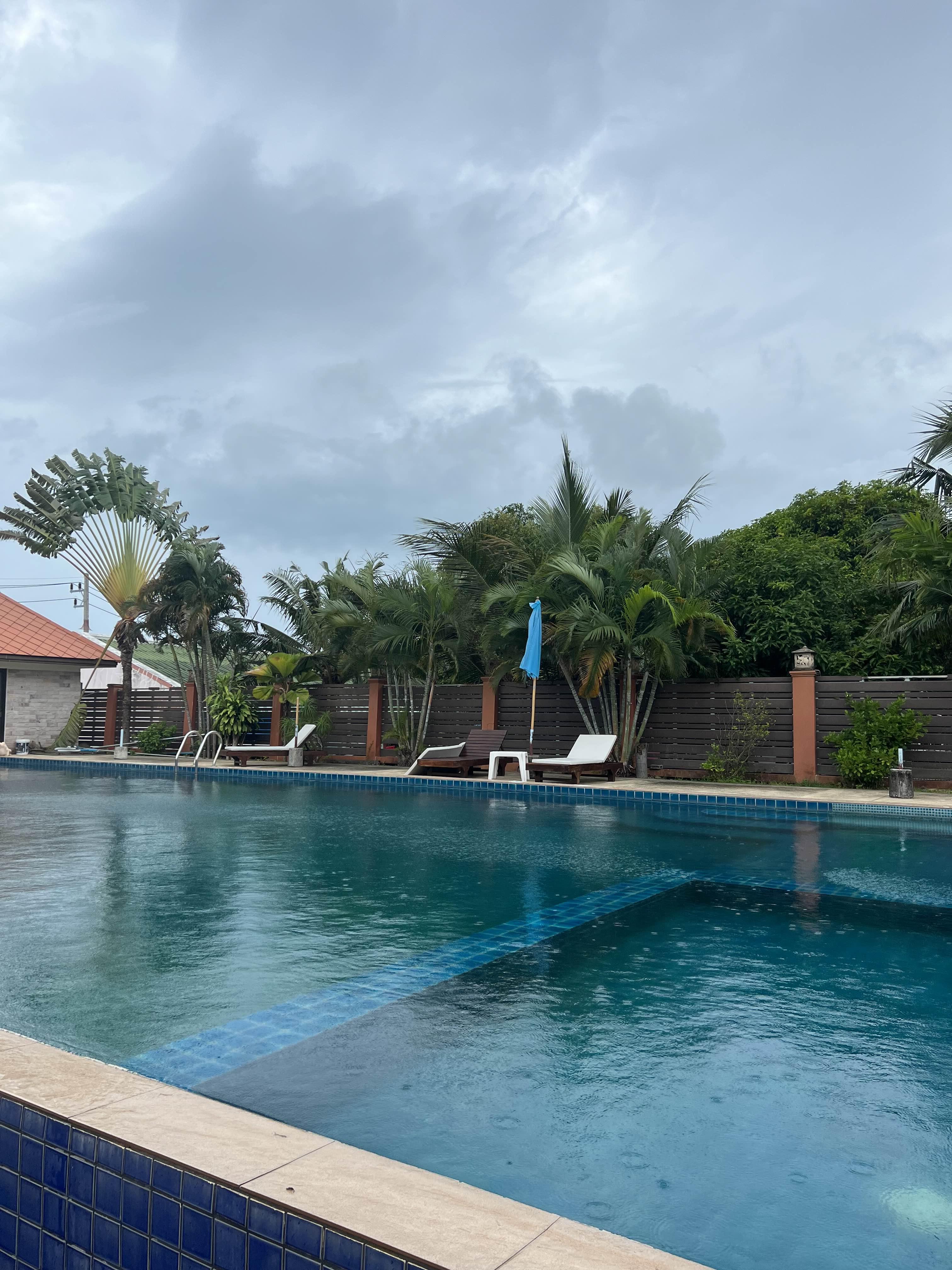 그리고 예약한 이유중 하나는 수영장이 있기 때문이었습니다. 생각보다 넓은 수영장이었습니다. 사람들이 이용하는 것을 딱 한번 보고 수영을 하러 갔었는데 수심이 꽤나 깊습니다. 근데 수영장 수질 상태는 그리 좋아 보이지는 않았습니다. 그부분은 조금 아쉬웠습니다.