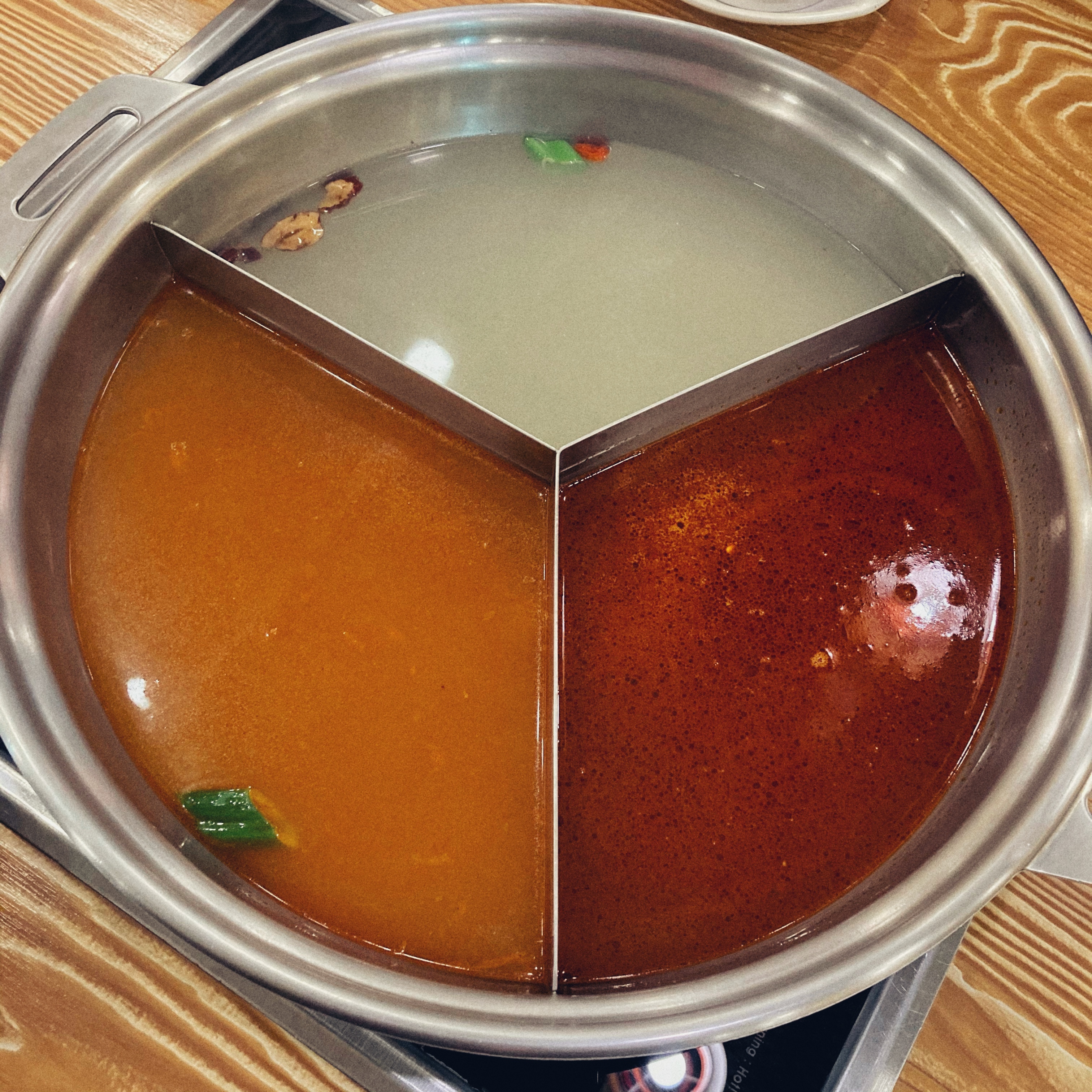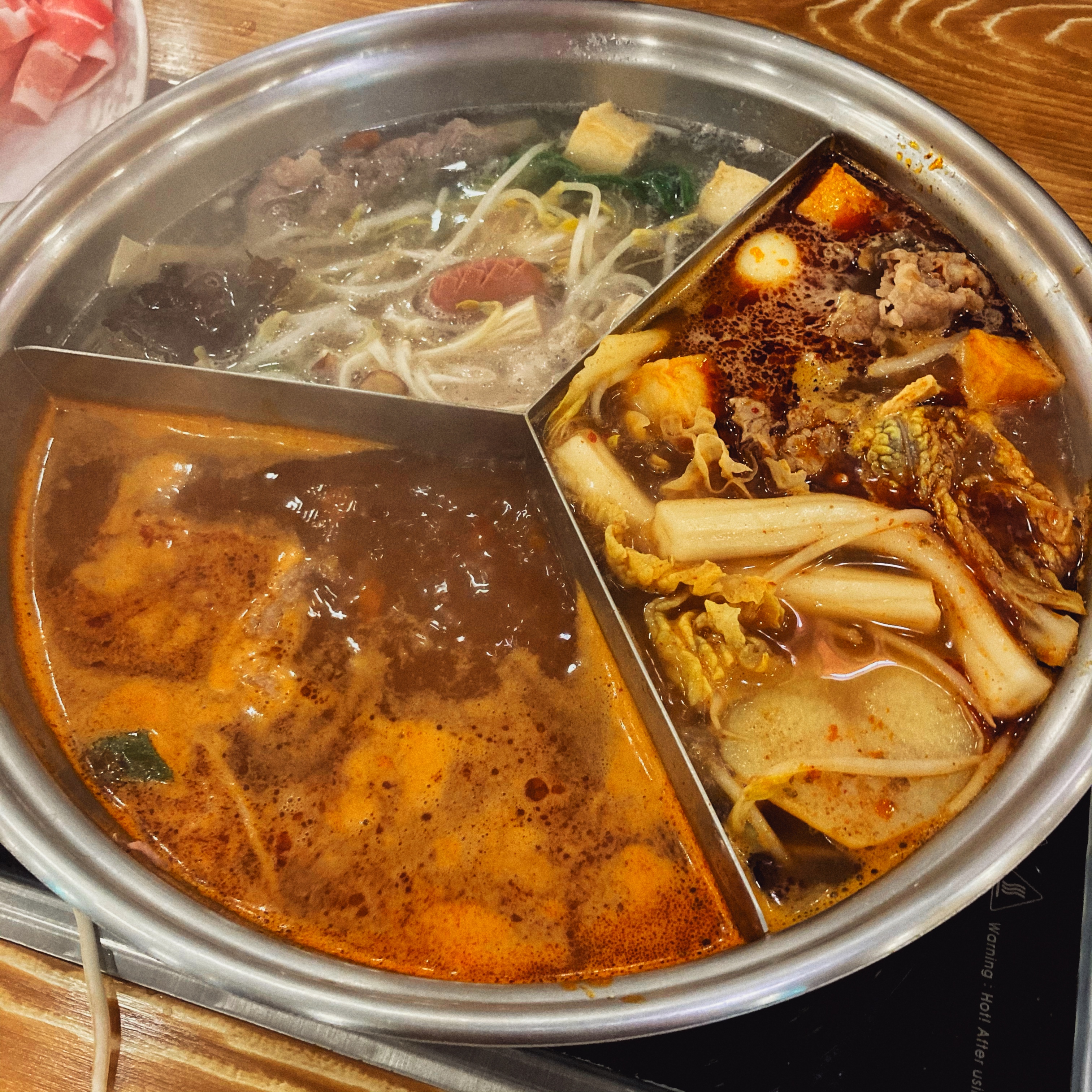 홍탕, 백탕, 토마토탕 3가지의 국물이 들어있다