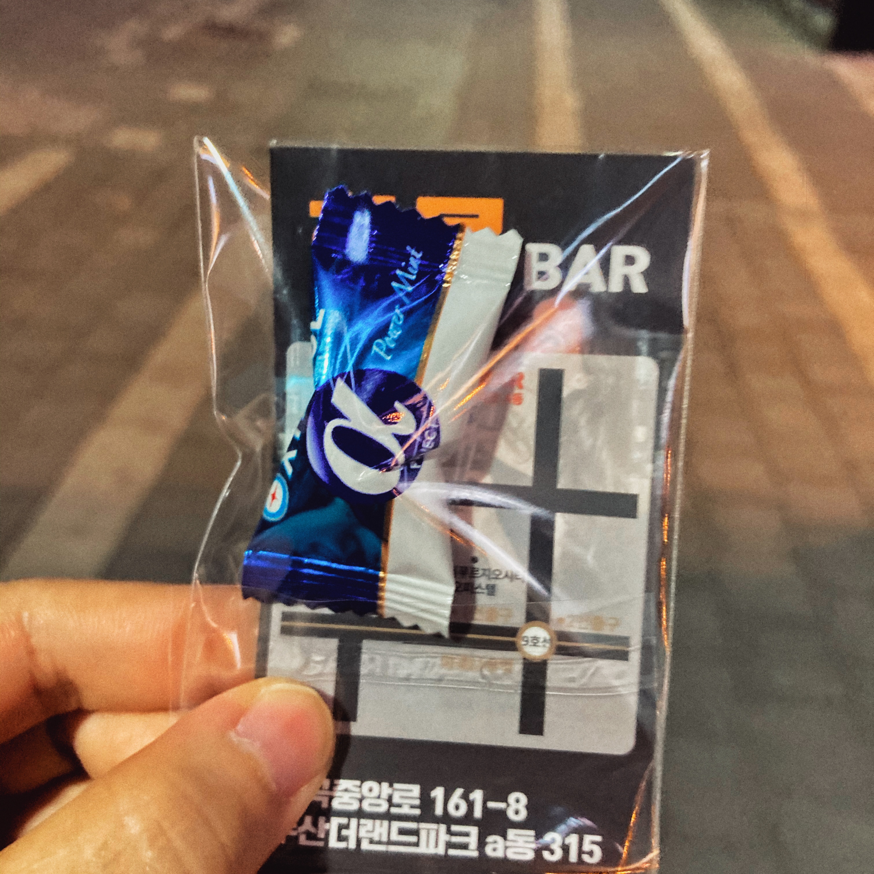 계산대에 있는 사탕을 집어왔다