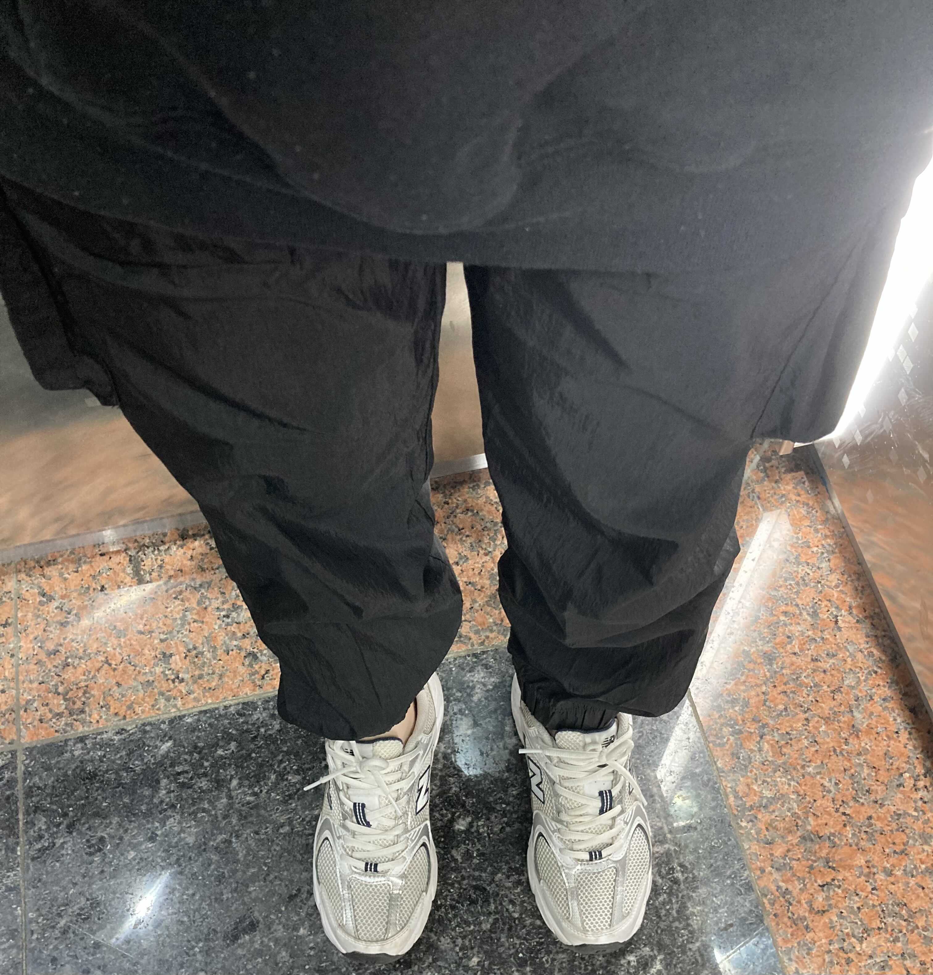 아주 퍼슬럭거리는 비닐 느낌의 팬츠다