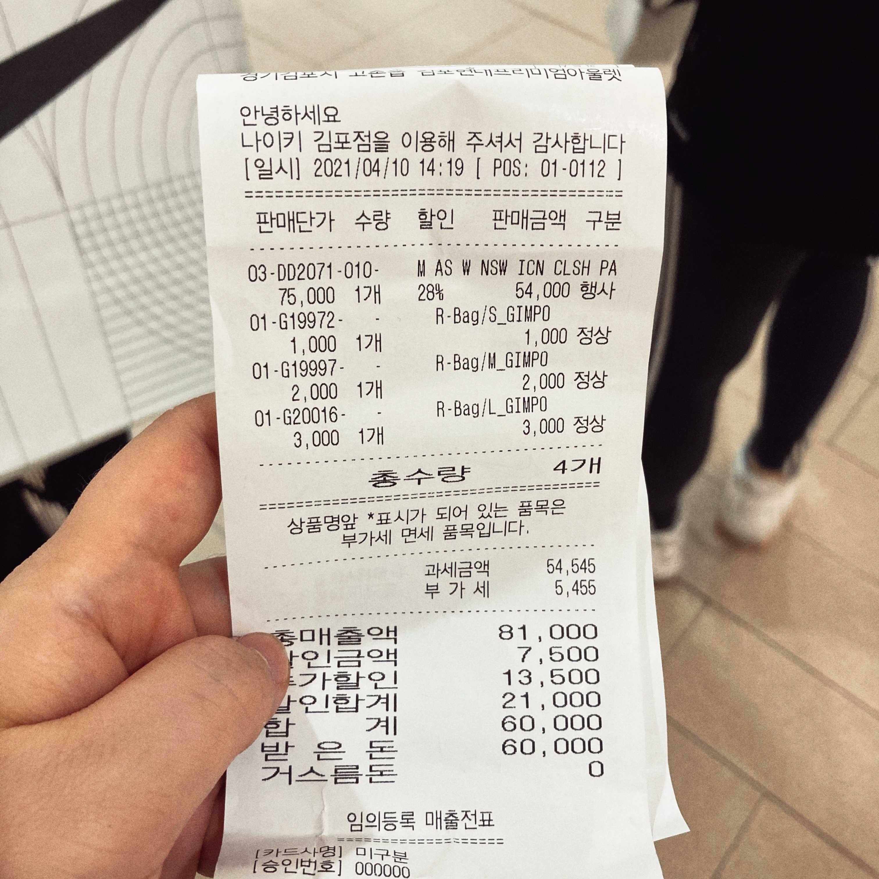 가격은 나이키 멤버쉽할인 까지 받아서 54,000원에 구매했다