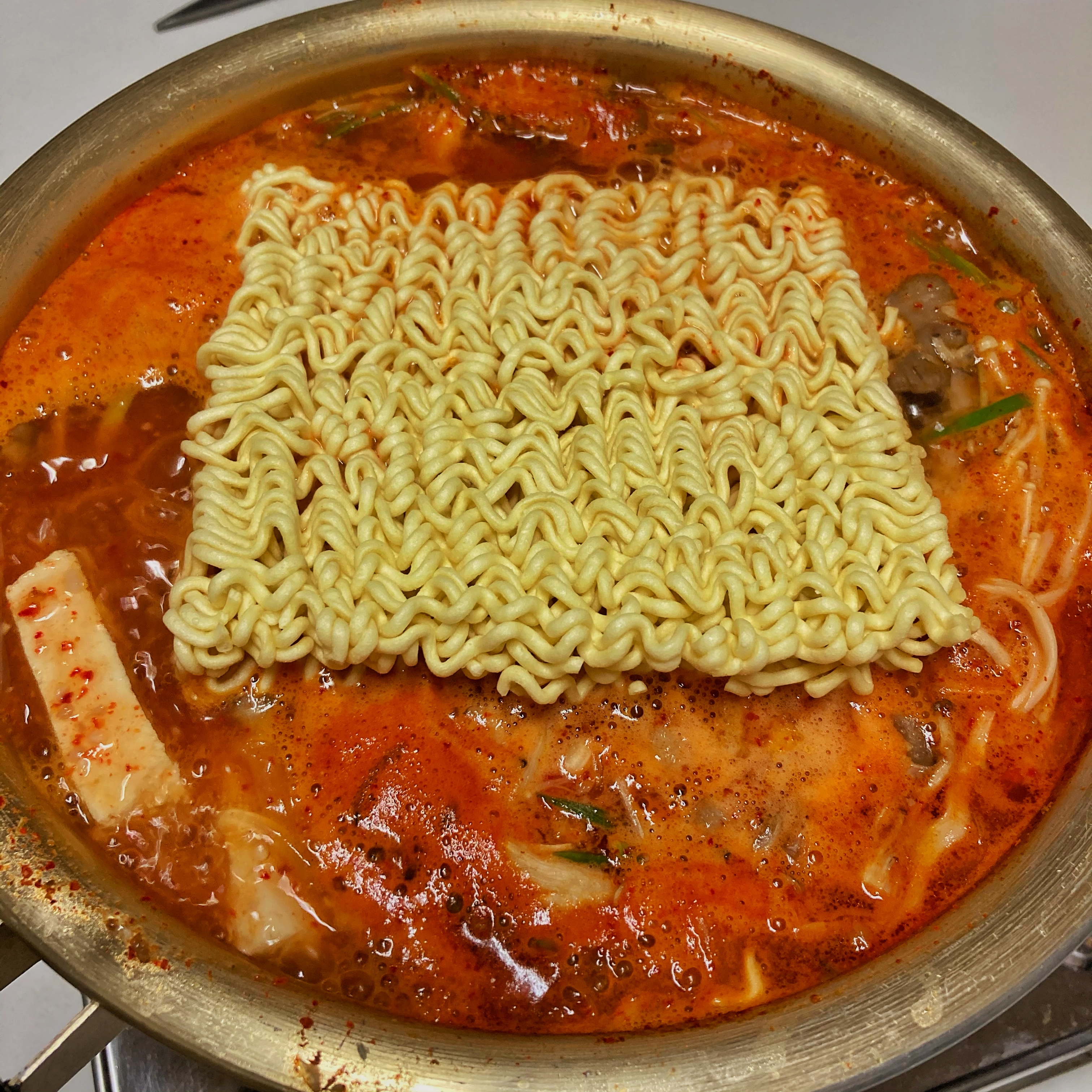 방신시장안에 3인분에 9천원인 부대찌개가있다