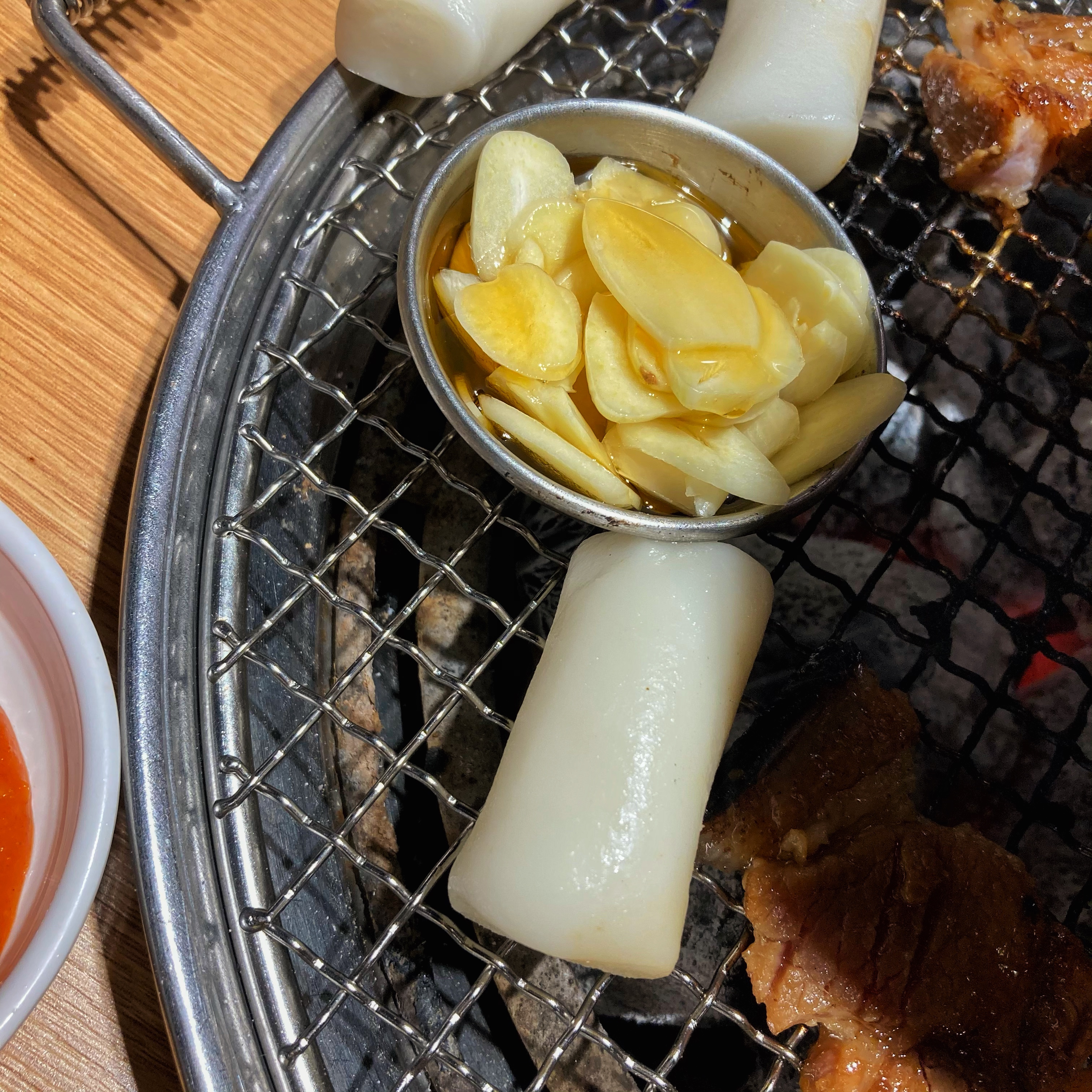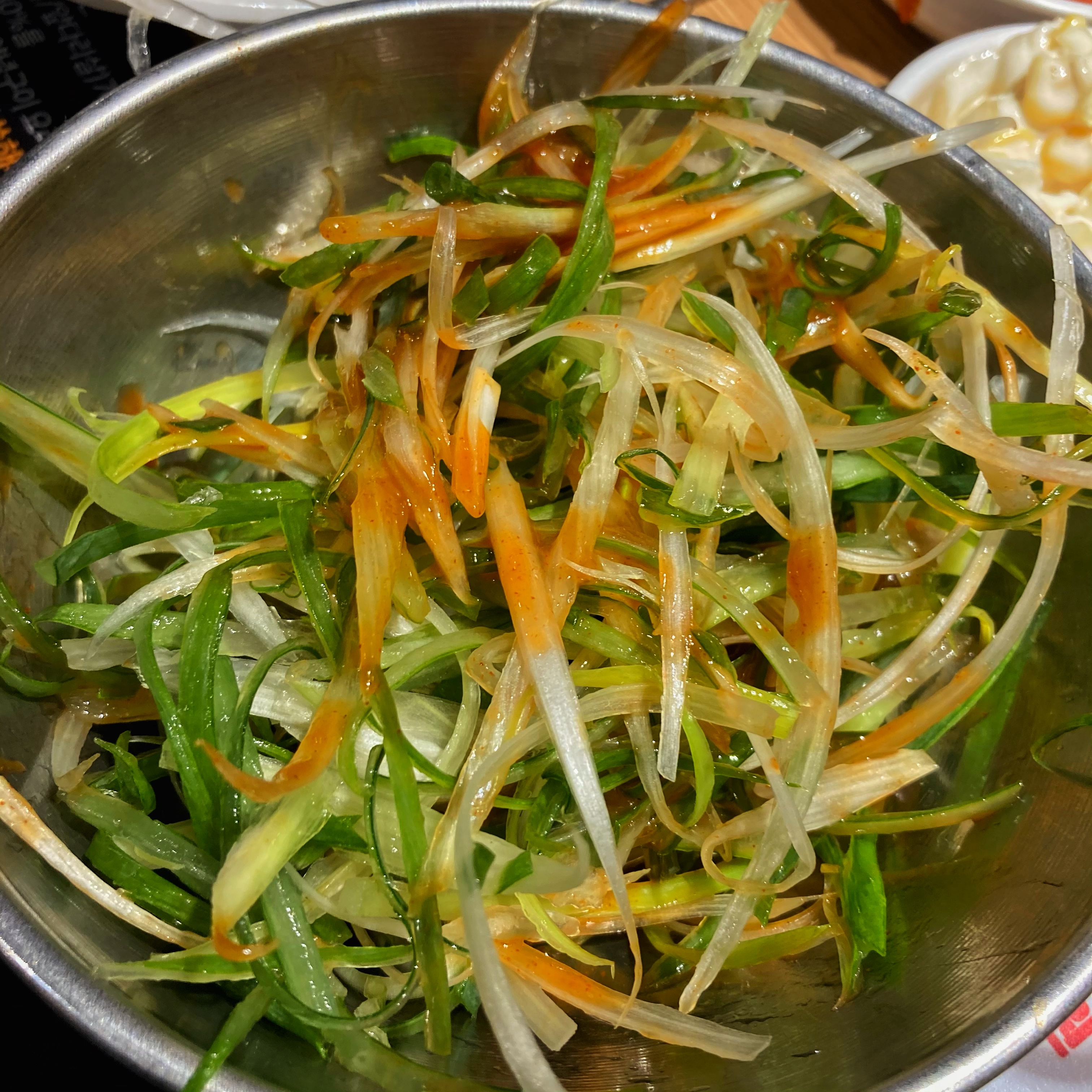 파채, 마늘, 콘샐러드, 김치, 쌈장