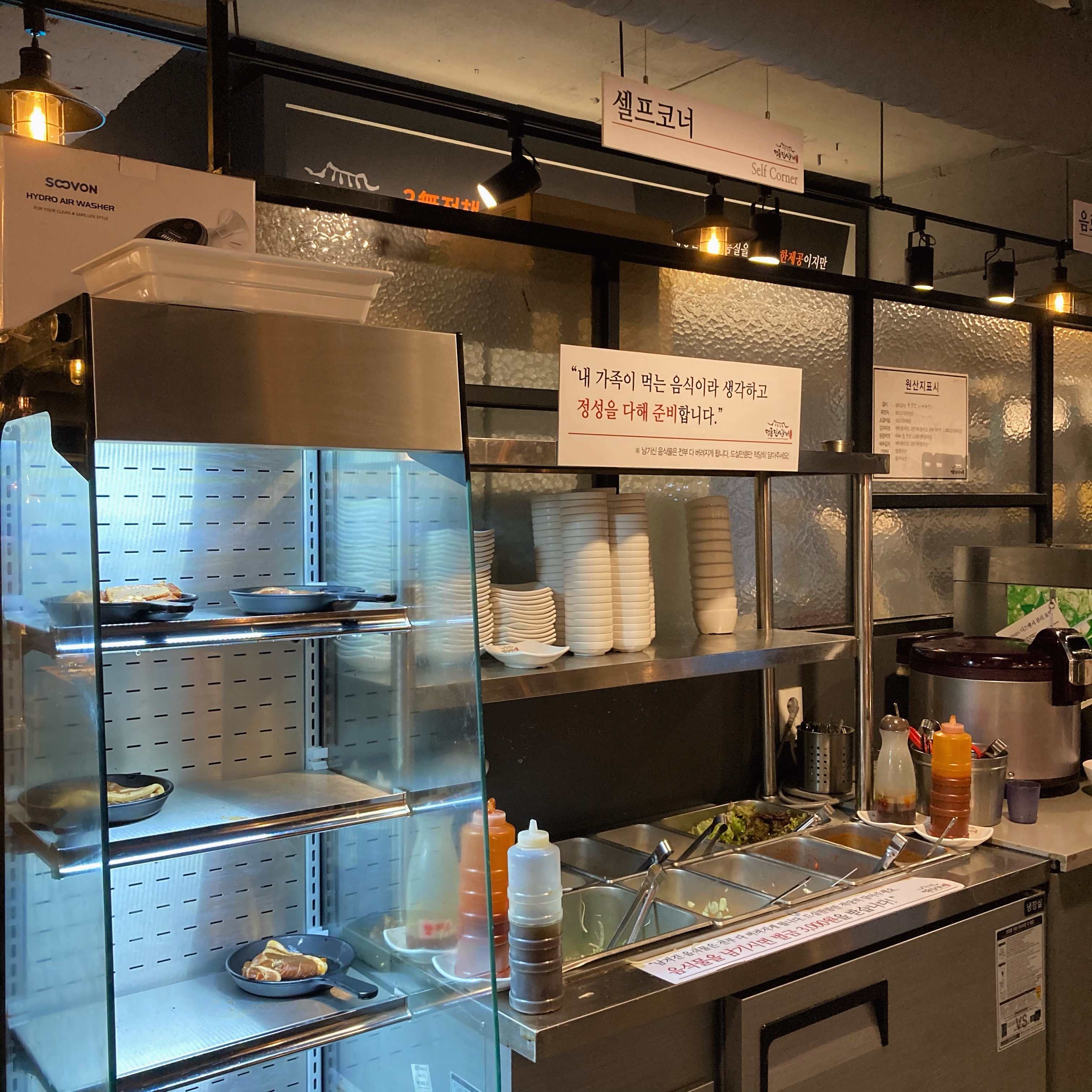 기본으로 주는 찬이 있디만 셀프코너에가서