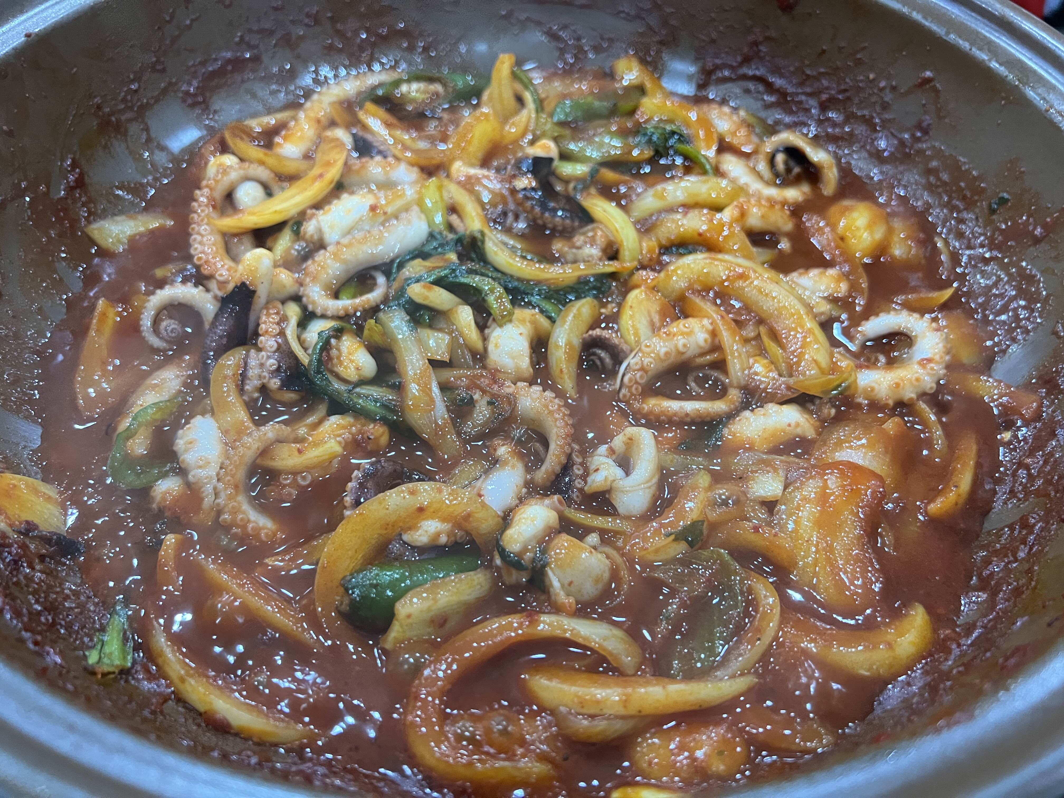 쭈꾸미는 조리 안된 상태로 나온다. 가스불 켜서 볶아먹으면 된다.